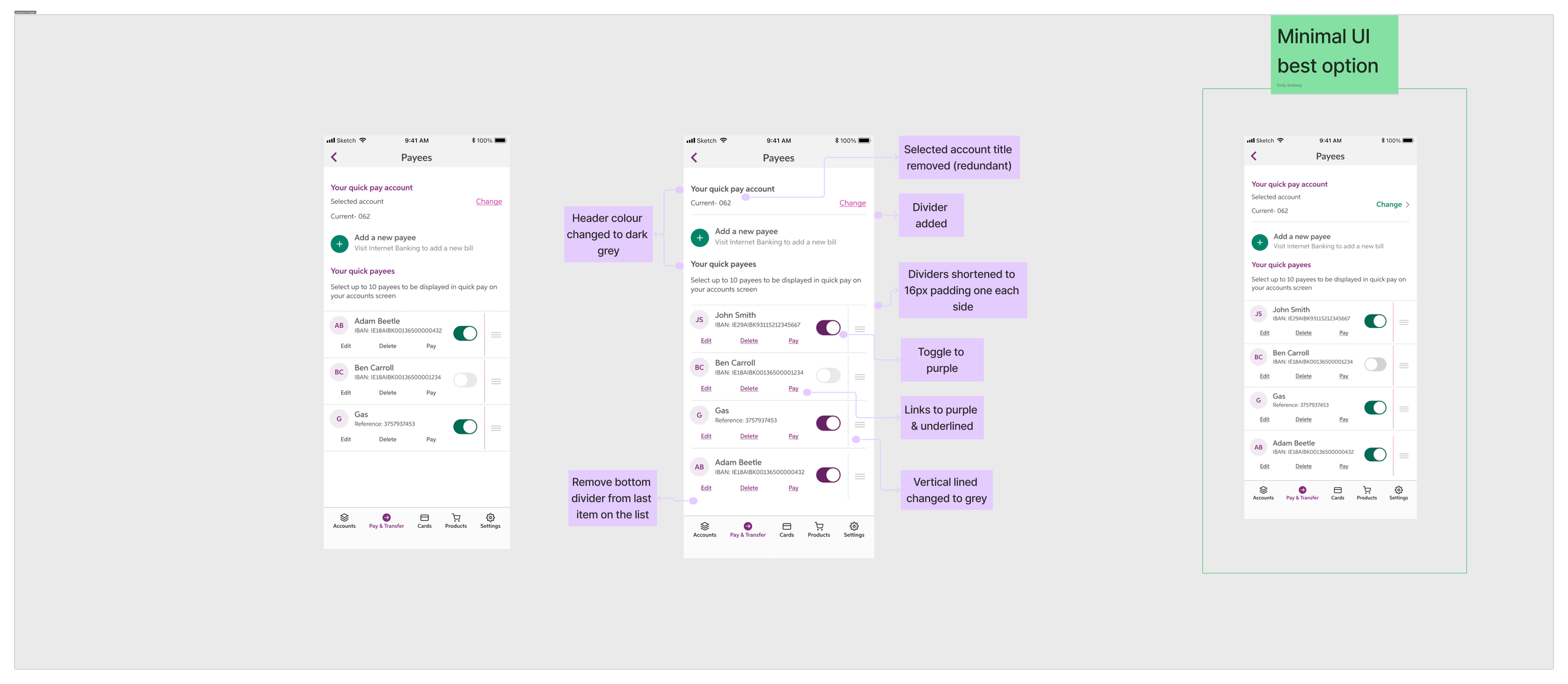The VoP design solution had the most background research of all the sub-tasks thanks to the very similar Confirmation of Payee mandate completed the year prior for the U.K., which included AIB’s Northern Ireland app.